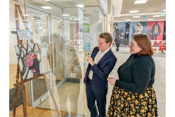 Eight pieces of work from the original exhibition are now on display in the window of Josh Reynolds MP’s constituency office in the Nicholsons Centre.