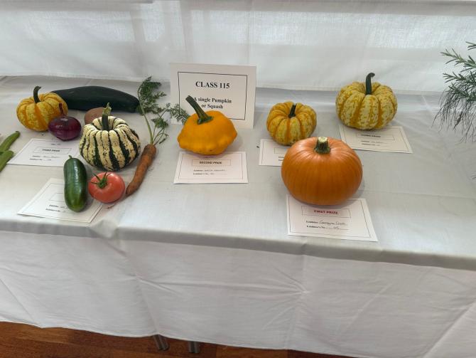 The tables featured a range of items including tomatoes, pumpkins, onions, plants, flowers, cakes, photographs and crochet pieces.