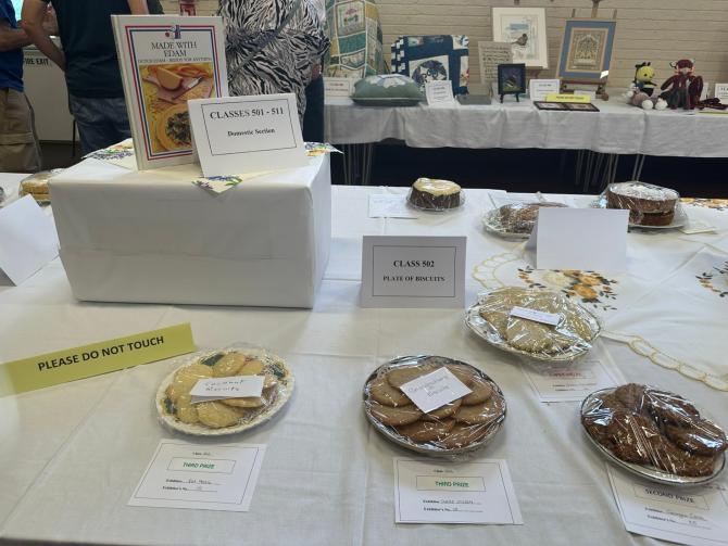 These includes flowers and pot plants, art, photography, handicrafts, baking, cake-making and fruit and vegetables.