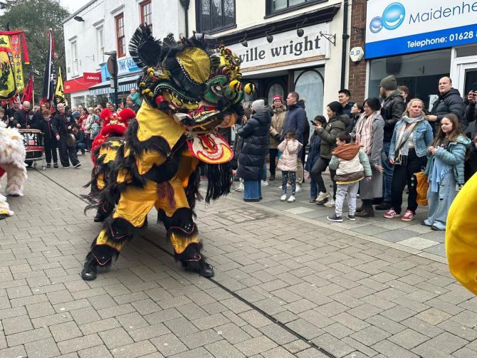 Thousands of spectators watched on as colourful lions danced through the town centres of Maidenhead and Windsor on Saturday as part of the annual Lunar New Year parade.