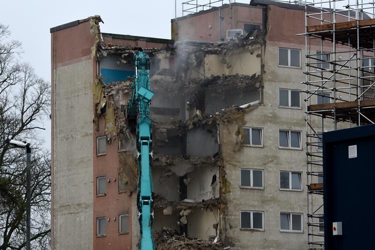 Demolition work is underway on the first of four ageing tower blocks in Dedworth.