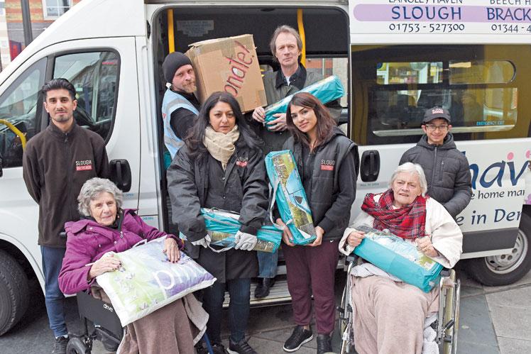 Senior citizens from a Langley care home donated supplies to homeless people in Slough town centre at the weekend.