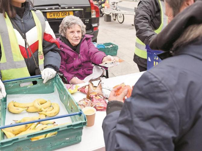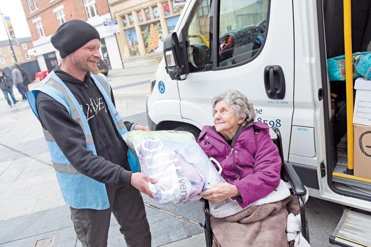 A collection point opened in the care home and filled fast with items, which residents handed out to the homeless on Sunday in the High Street outside the HSBC branch, with a little help from Wexham School students.