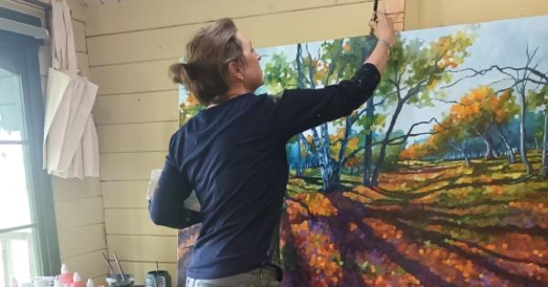 Cat’s art explores our relationship with trees and she captures what it feels like to walk in the woods using expressive and colourful brush marks to create light-filled and dappled forest scenes.