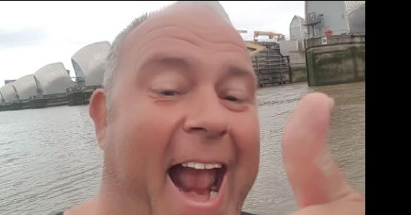 He hit rough water in central London, nearly sinking twice, and had to stop to empty his kayak five times.
