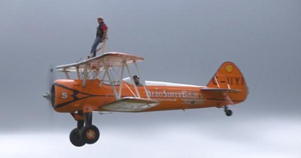 He completed the 130mph wing walk on a Forties Boeing Stearman biplane at RFC Rendcomb Airfield, near Cirencester.