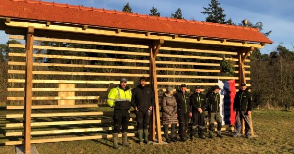 Marcus Ferrar, a trustee of the society, was present as four workmen flew in specially from Slovenia and erected the hayrack on the recreational land off Greys Road, which is owned by the town council.