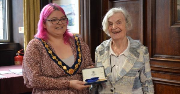 She was presented with the award by Mayor Kellie Hinton at a ceremony in the town hall on Monday while surrounded by family, friends and town councillors.