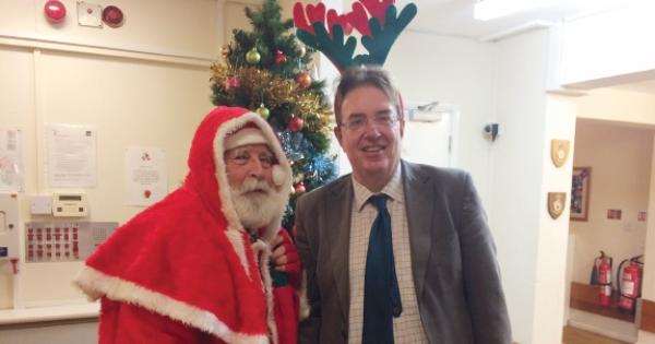 He went to the Leonard Cheshire Home in Burcot and donned reindeer antlers while posing for a photo with Father Christmas.