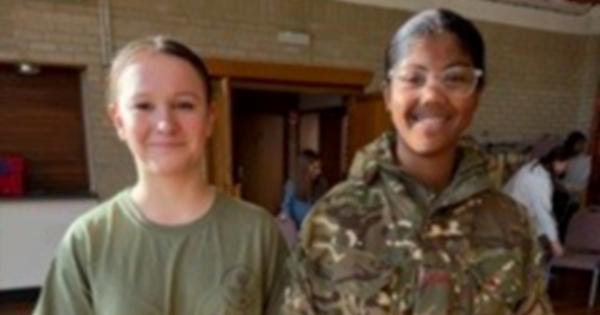 Erin Aiken and Madeleine Chandrapal, who will play the roles of Squire Hardup and Jack in the upcoming production of Jack and the Beanstalk at the Kenton Theatre, are both cadets and had been on “poppy duties” in the town.