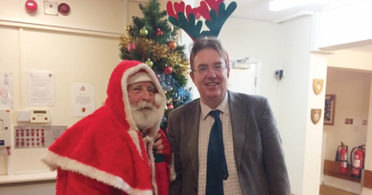 He went to the Leonard Cheshire Home in Burcot and donned reindeer antlers while posing for a photo with Father Christmas.