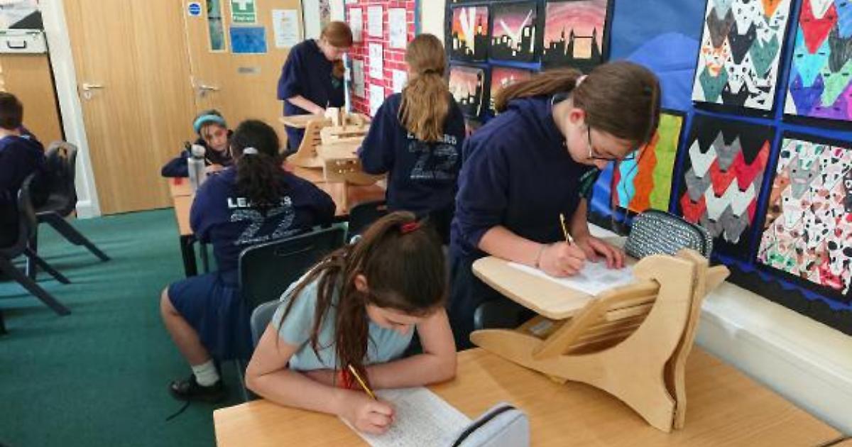 The portable desks, which can be placed on top of an existing desk, were trialled at the school and the response from both students and teachers was positive.