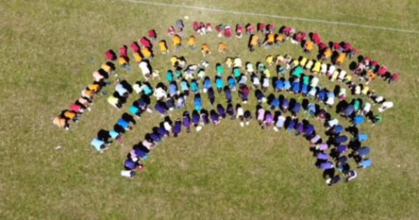 Teacher Rachel Hudson said: “Each year group had a different colour and we explained to the children that in our classes we were just a single colour but when we joined together to form the rainbow we would all create something amazing as a whole school family — an important value we instill in our children.