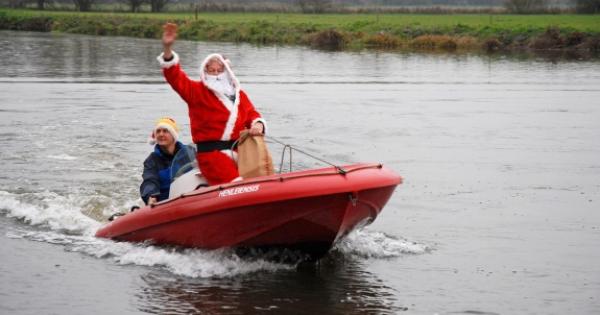 Father Christmas arrived at Henley Sailing Club on a boat as members were finishing their annual Christmas meal at the clubhouse off Willow Lane, Wargrave.