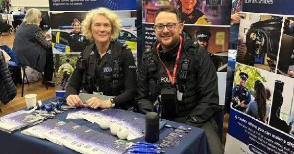 PCs James Oliver and Barbara Taylor manned a stall where they spoke to students about careers in policing and the many different roles available with Thames Valley Police.