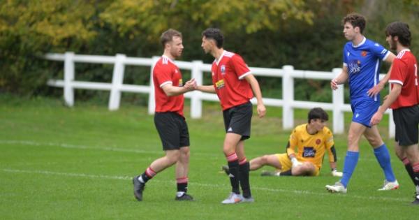 The visitors dominated proceedings at YMCA’s Padworth ground but still found themselves 2-1 down at half-time. YMCA took the lead when Woodcote keeper, Ben Lallament, was unable to hang on to a corner kick and left a striker with an easy tap-in. Woodcote equalised with a long-range left-foot free kick from Andy Taylor, who was making his 100th appearance for the club.