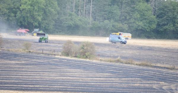 The blaze affected about 10 acres of stubble and destroyed large bales of straw but was prevented from spreading to other fields. The land is owned by Little Parmoor Farm.