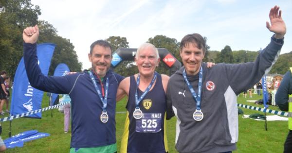 His other son Andy, 42, also took part, finishing in a time of one hour, 40 minutes and 30 seconds.
