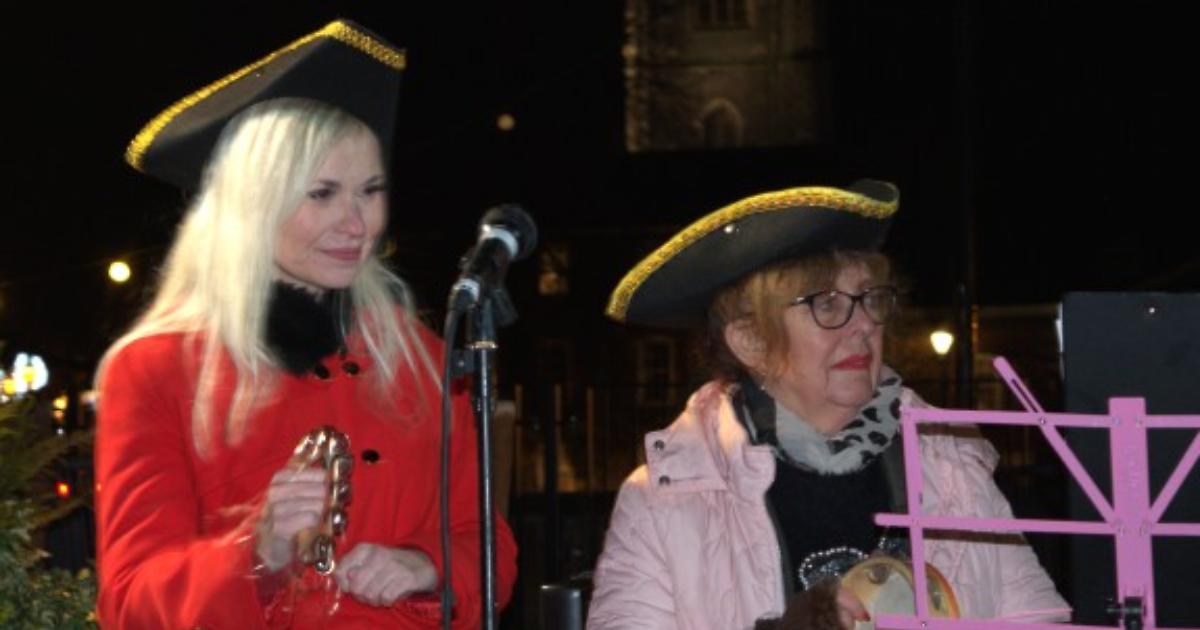The night’s refreshments were sponsored by the Chocolate Café in Thames Side, which handed out mince pies.