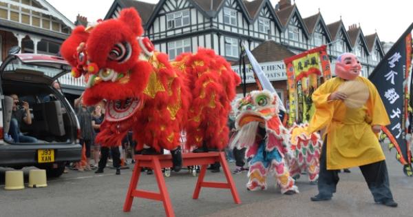 Eagle Claw Kung Fu display team, from Maidenhead, performed ceremonial lion dancing and drumming for the crowd.