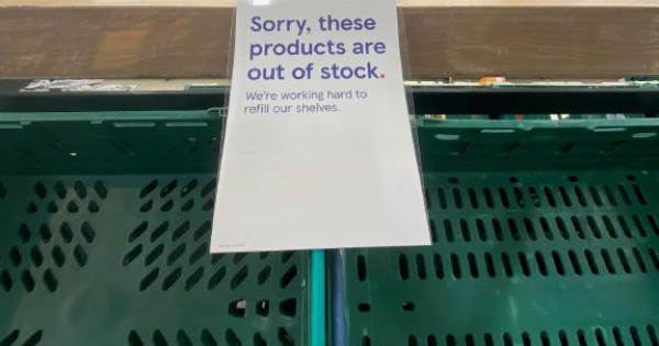 There were signs stating: “Thanks for your patience. Supply issues are making it difficult to source some products to the high quality you expect from us. We’re working hard to bring you our full range as soon as possible.”