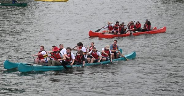 The bell boat, which is two canoes linked together to provide extra stability, sank during one of the races.
