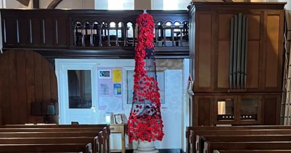 Residents contributed their hand-knitted poppies of all shapes and sizes to the church to be included.