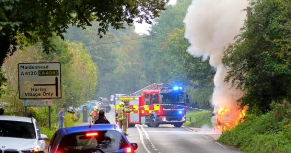Traffic was held in both directions for about an hour while firefighters from Maidenhead brought the blaze in Henley Road under control.