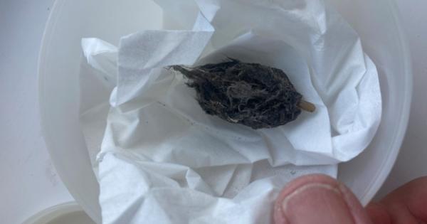 The pellet is a tidy package of indigestible materials that raptors, in this case the falcon who lives there, throw up to get shot of bits of fur, feather, bones, insect parts, plant matter or whatever indigestible material has reached the bird’s gizzard.