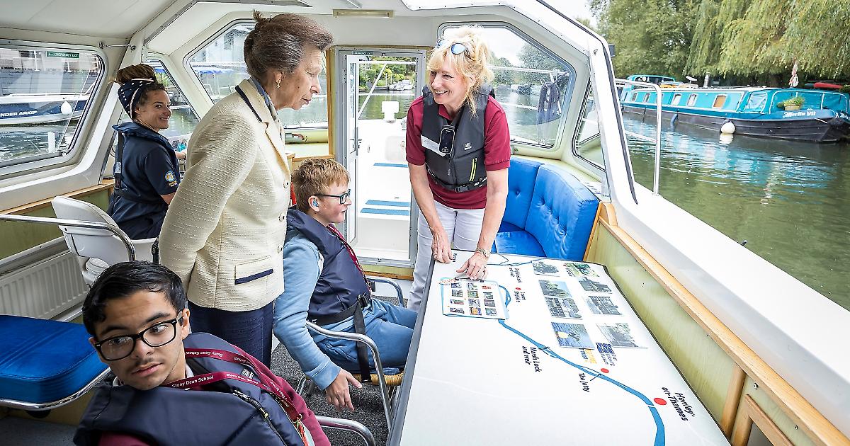 The Princess Royal visited the River & Rowing Museum to learn more about the initiative created by the museum and the Rivertime Boat Trust to promote education about the River Thames and the natural environment.