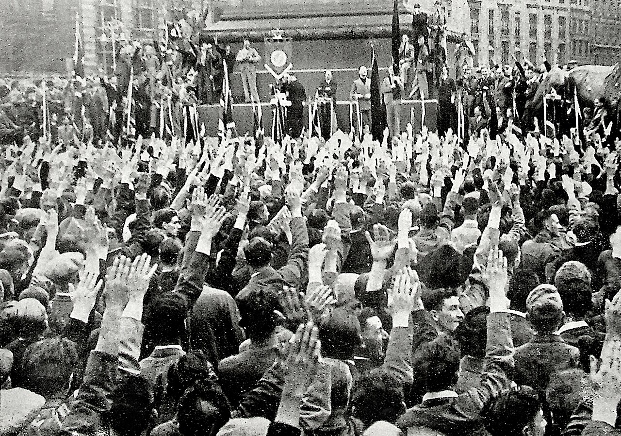 British Union of Fascists supporters make the ‘Roman salute’ in Trafalgar Square 1938 (credit: Wikimedia Commons)