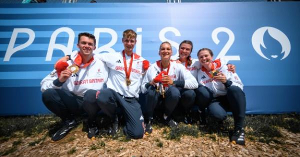 Britain led from 500m and finished more than three seconds ahead of silver medallists the United States in a time of six minutes 55 seconds and 30 milliseconds.