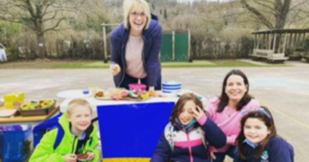Parent Grainne McCormack organised the fundraising initiative and made a Ukrainian flag to dress the sales table.