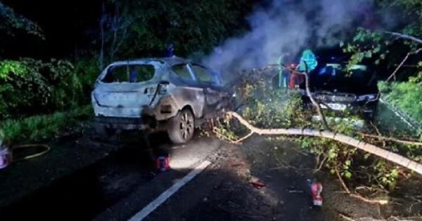 A crew from Henley fire station attended the scene to tackle the blaze and the moved the tree. Police arrived and arrested a 22-year-old man from Didcot on suspicion of driving over the permitted alcohol limit.