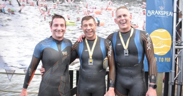 At the finish the swimmers were given a bottle of Brakspear’s Angel’s Delight beer and a finisher’s medal which doubled as a bottle opener by Mayor Rory Hunt before drying off and enjoying barbecue food.