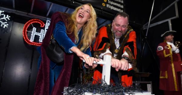 The American model and actress was the guest of honour at the event and turned on the lights of the Christmas tree in Market Place with Mayor Tom Buckley.